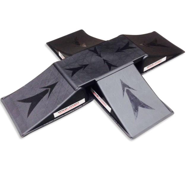 Super cool Mini skaterrampe i 5 dele til skateboards, rulleskøjte og løbehjuls tricks. Rampen er fremstillet af særlige anti-skrid-materiale så det ikke er nødvendigt med forankring i jorden. Rampe er fremstillet i helstøbt polypropylen (PP) kunstmatriale og samtidig super stabil og holdbar. Rampen er fleksibelt, da de enkelte elementer er lette at flytte og opbevare når der ikke skal skates. Optimal skaterrampe for træning i indkørslen eller fritidsklubben. Belastning op til 90 kg.
