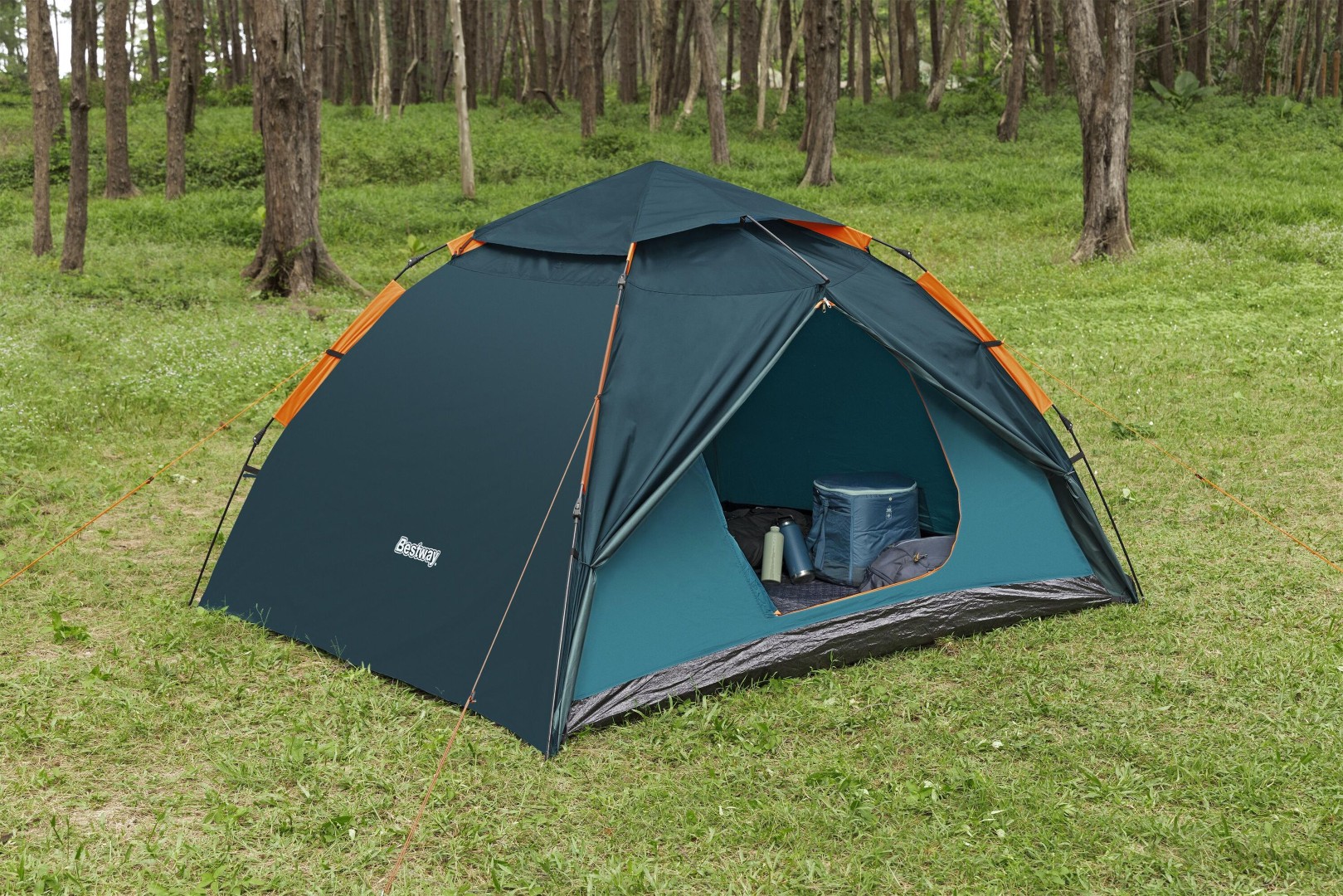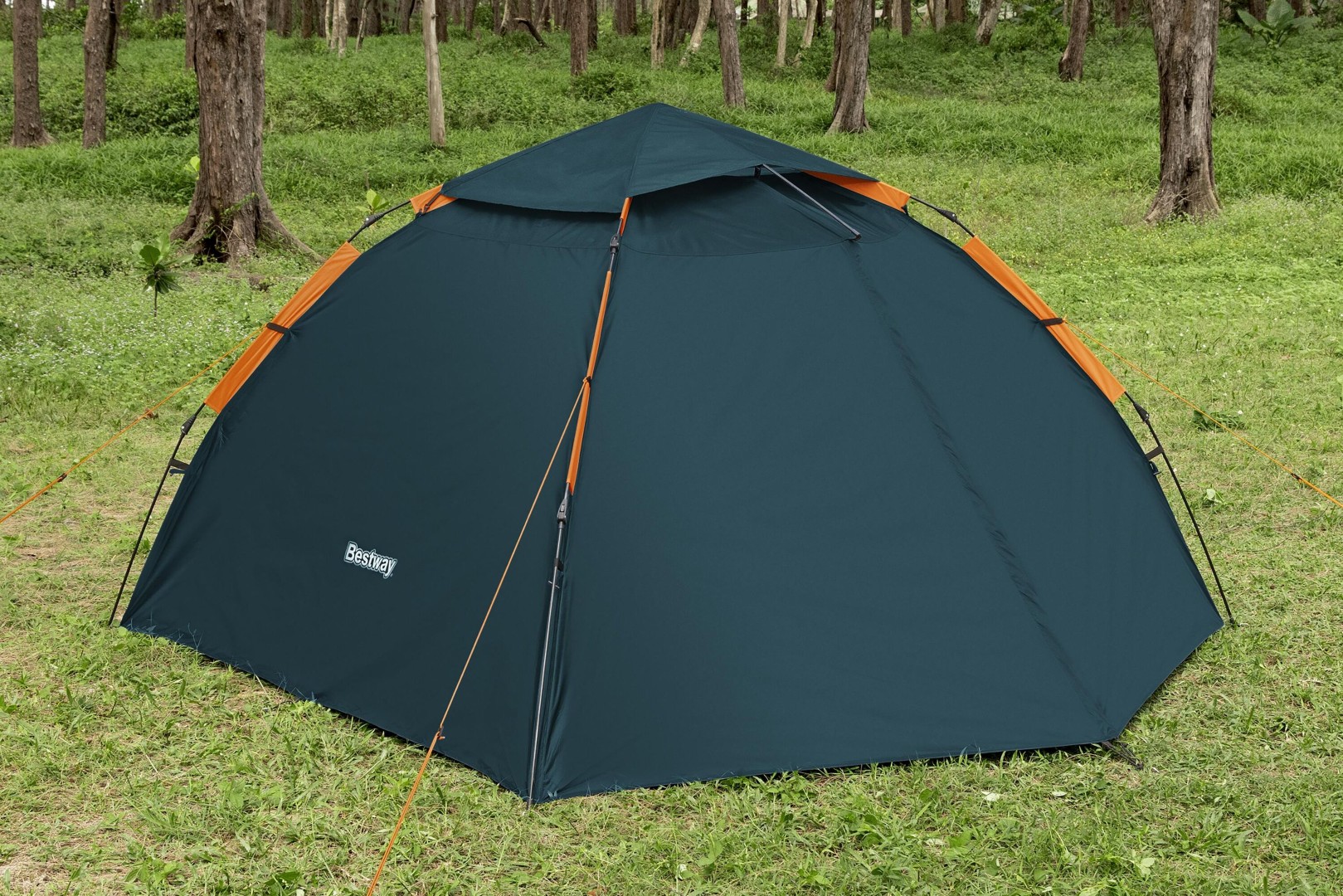 Bestway® Alpine Dome™-teltet er perfekt til at nyde naturen både dag og nat. Med SwiftClick™-systemet til øjeblikkelig opsætning tager det kun 5 minutter, så du og 3 andre kan bruge mindre tid på opsætning og mere tid på at slappe af i et skyggefuldt, køligt telt på stranden eller udendørs.