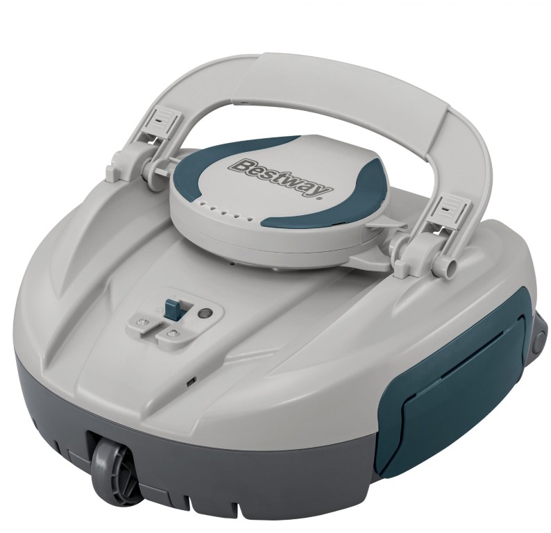 Bestway® AquaTronix™ G150 Poolrobotstøvsuger er en selvkørende poolrengøringsrobot, der gør det beskidte arbejde for at holde din pool ren og uberørt. Det selvkørende design bevæger sig selv hen over poolbunden, når det er placeret i vandet. Støvsugerbeholderen kan rumme op til 2,0 liter affald, før den skal tømmes. Quick-click-spænderne gør vedligeholdelse og rengøring til en leg - bare åbn rummet og fjern snavset. AquaTronix er designet med et genopladeligt batteri så den kan køre i 1 time, når batteriet er fuldt opladet. AquaTronix er kompatibel med pools med flad bund med et samlet areal på op til 30 m², og den fungerer bedst med runde pools med en diameter på op til 6,10 m, rektangulære pools med en længde på op til 7,32 m eller ovale pools med en længde på op til 7,32 m.