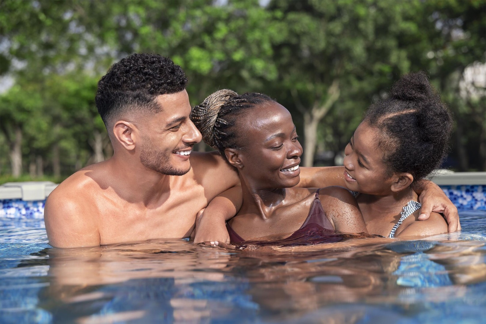 Det realistiske Prismatic Stone™ print giver poolen et smukt udtryk, der tilføjer struktur og en klar blå farve til den indvendige dug