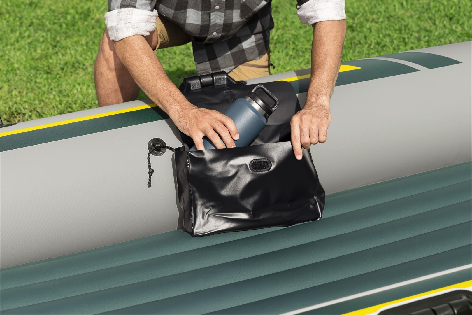 Med 3 aftagelige sædehynder og et fast, oppusteligt gulv kan du nyde et ekstra niveau af komfort, der gør turen mere behagelig. Når du er færdig, kan du bruge skrueventilerne til hurtig oppustning/tømning til at tømme gummibåden, tørre den, folde den sammen og nemt gemme den væk i bæretasken indtil dit næste eventyr. Nyd turen, og udforsk naturen med Hydro Force Ranger Elite X3 Gummibådssættet.