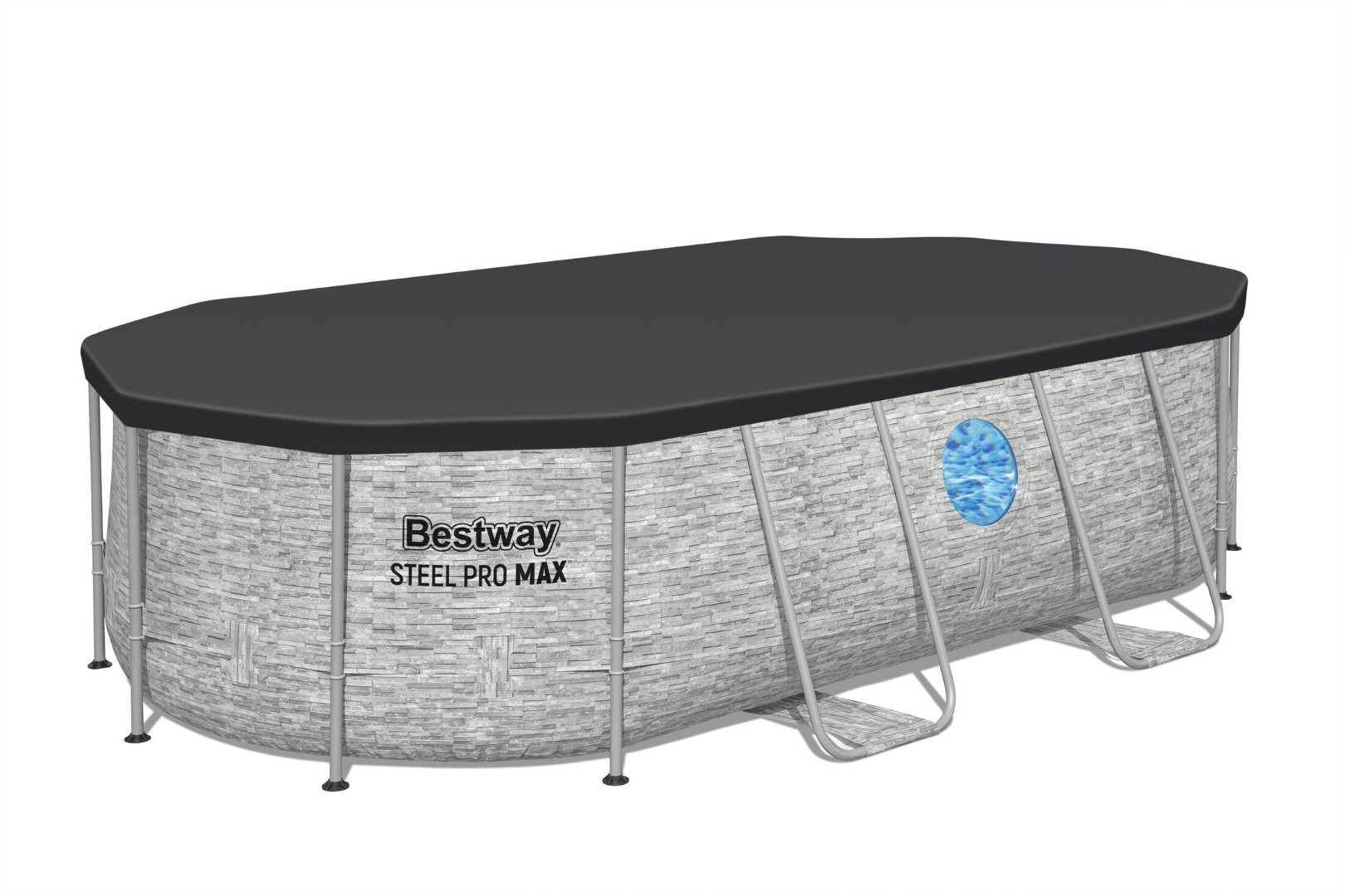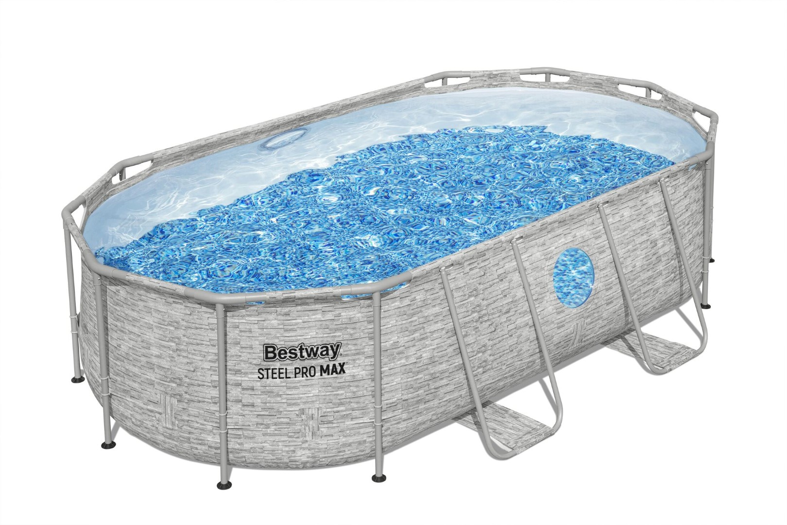 4,27 m x 2,50 m x 1,00 m (14 ft. x 8 ft. 2 in. x 39,5 in.) oval Bestway Steel Pro MAX-pool rummer 7.250 l (1.915 gal.) vand