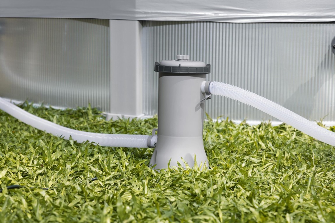 - Indhold: 1 pool, 1 filterpumpe, 1 filter, 1 pooldækken, 4 kopholdere, reparationslap
