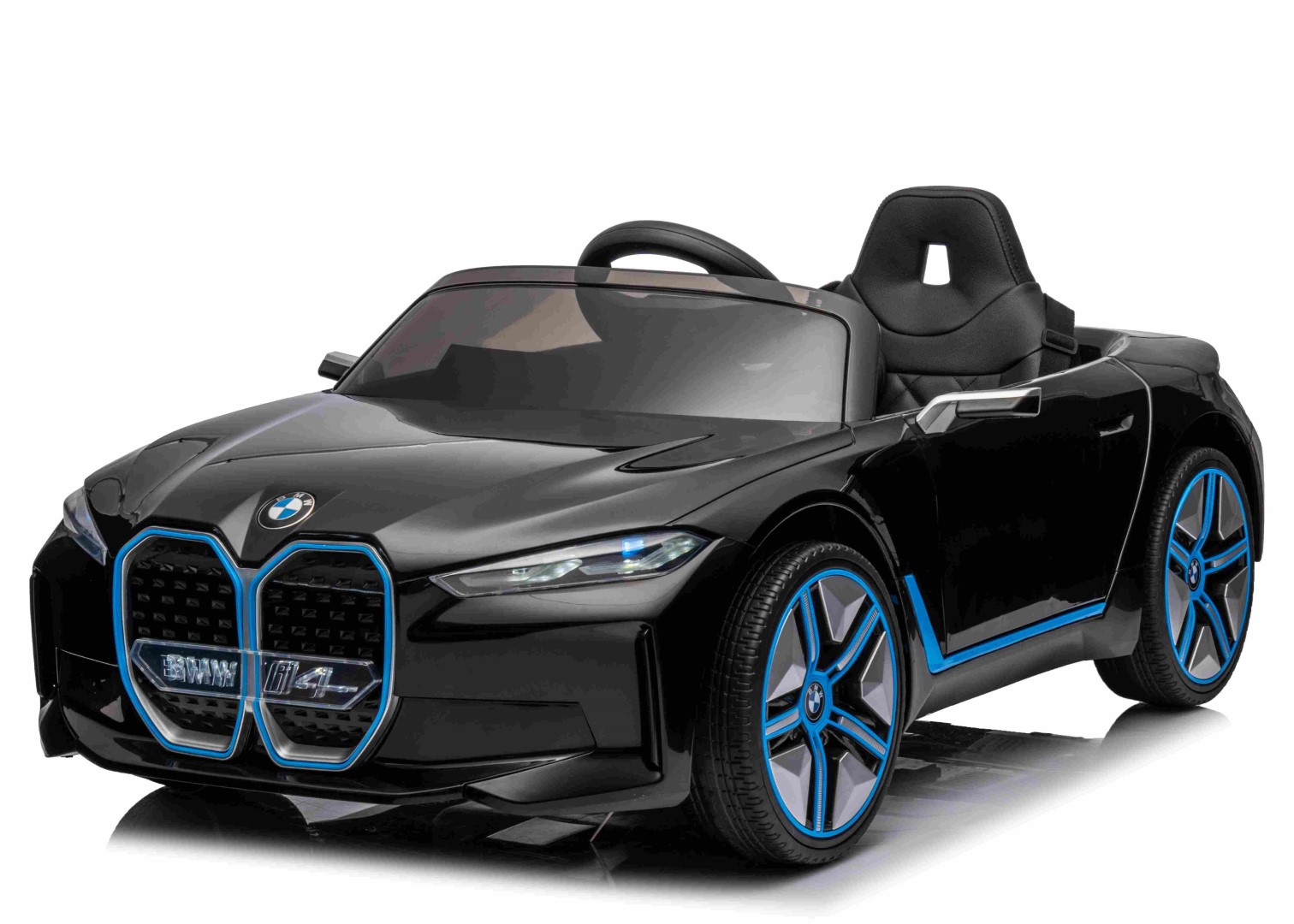 Super flot BMW i4 elbil til børn med kraftige 12v motorer. BMW'en har 2 døre der kan åbnes og lukkes.