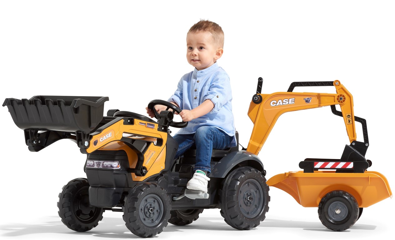 Case Construction Pedal Traktor m/Frontskovl + Trailer + Gravekran