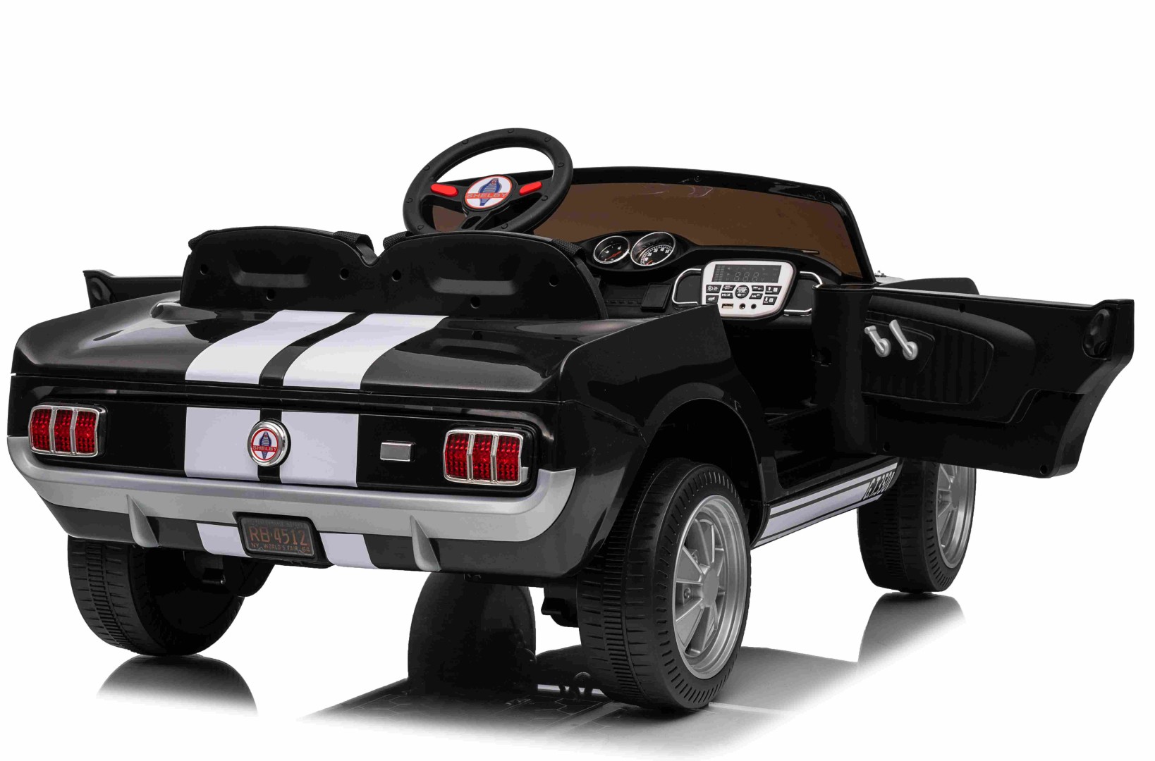 Giv dit barn en ægte muskelbilsoplevelse med denne licenserede Ford Mustang Shelby GT350 elbil. Den ikoniske Mustang er gengivet i flot design med autentiske detaljer, kraftig motoropsætning og komfortabelt lædersæde – perfekt til små bilentusiaster, der elsker fart og stil.