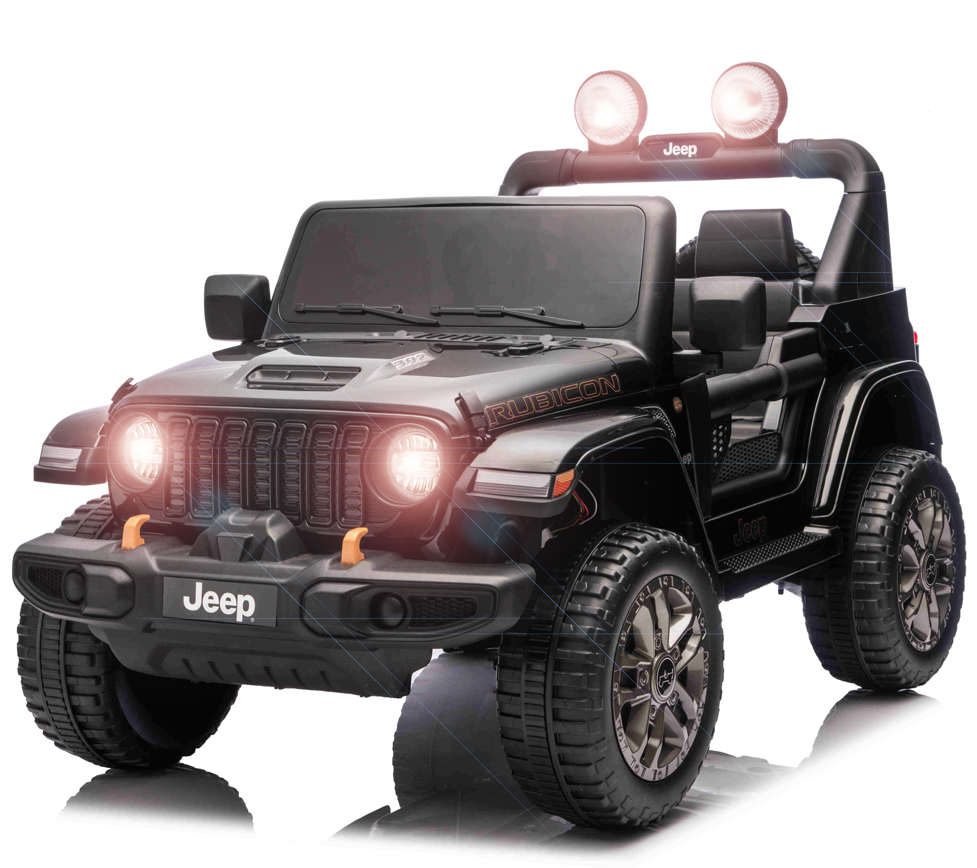 Jeep Wrangler Rubicon elbilen kombinerer rå power, komfort og sikkerhed i én imponerende pakke. En oplagt gaveidé til børn, der drømmer om deres helt egen terrænbil.