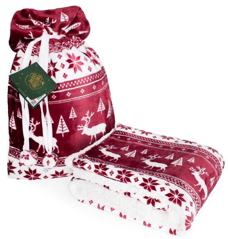 Jule Coral Fleece tæppe - 150 x 200 cm, Mørkerød