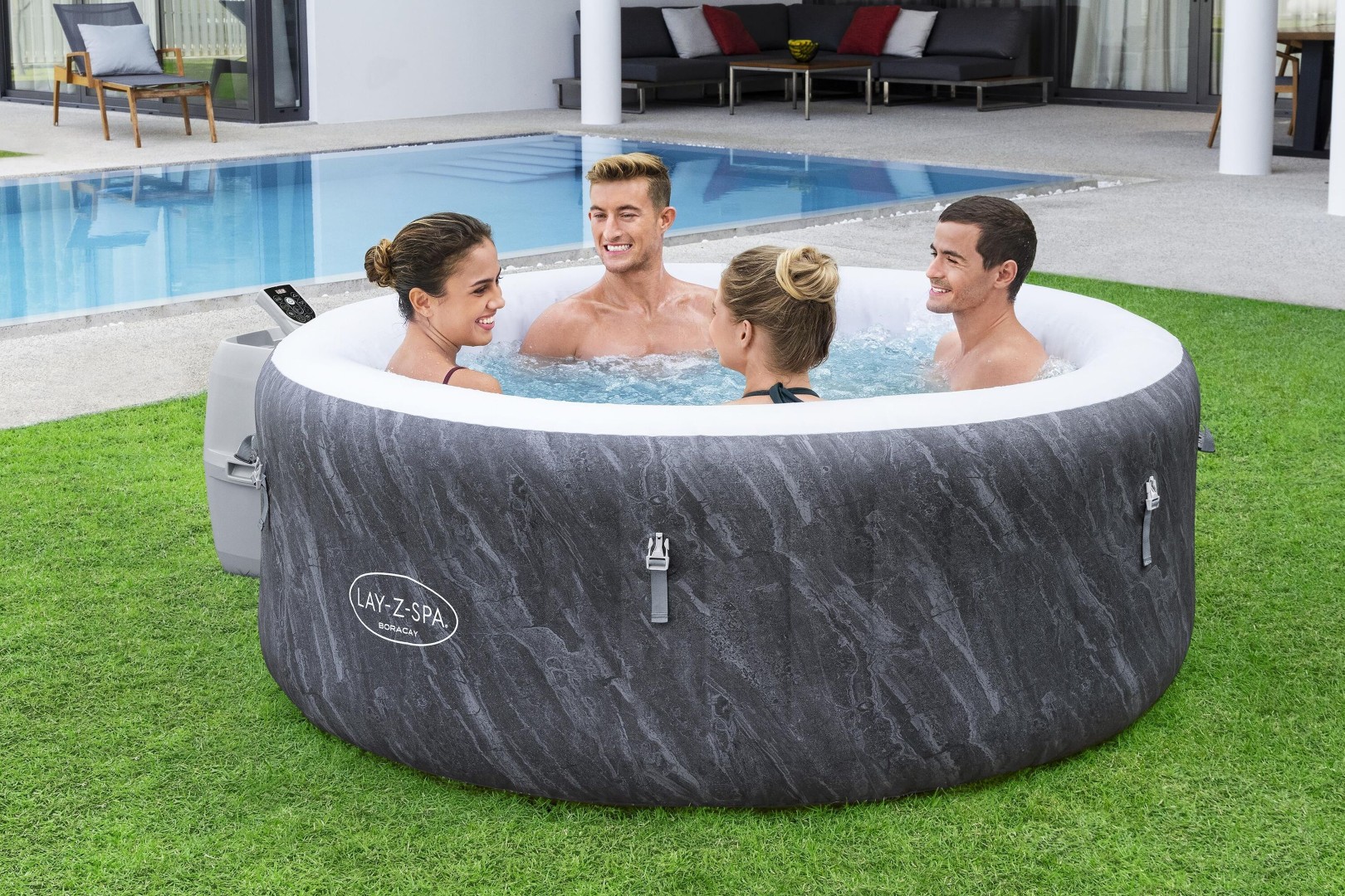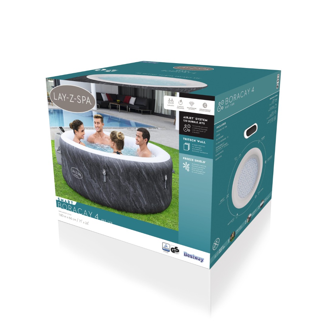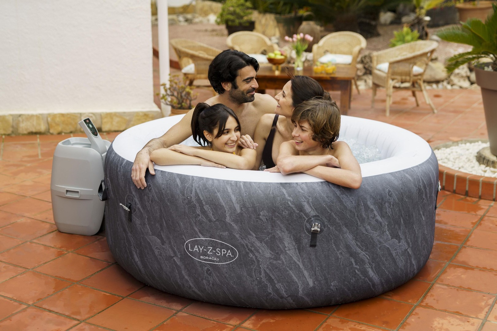Sænk dig ned i det varme, boblende Lay-Z-Spa® Boracay Smart AirJet™ 4 spabad, skabt af verdens første producent af transportable spabade.