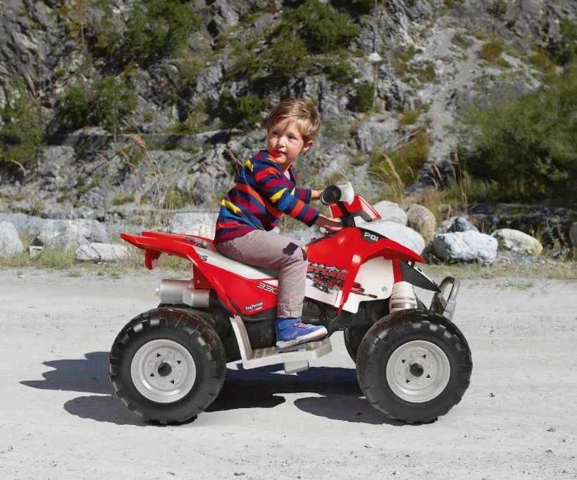 Lige så god som en rigtig quad! Kofangere, mudderklapper, fodstøtter og masser af kørekomfort takket være et rummeligt sæde og skridsikre håndtag.