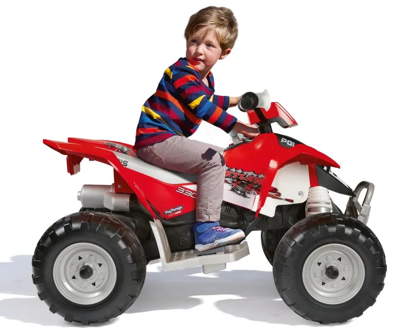 Elektrisk quad til børn til offroad-eventyr. Højtydende funktioner såsom lys, lyde, melodier og horn, der sikrer masser af sjov fra 3-års alderen. Polaris Outlaw 330W kører på et 12 V/8Ah genopladeligt batteri.