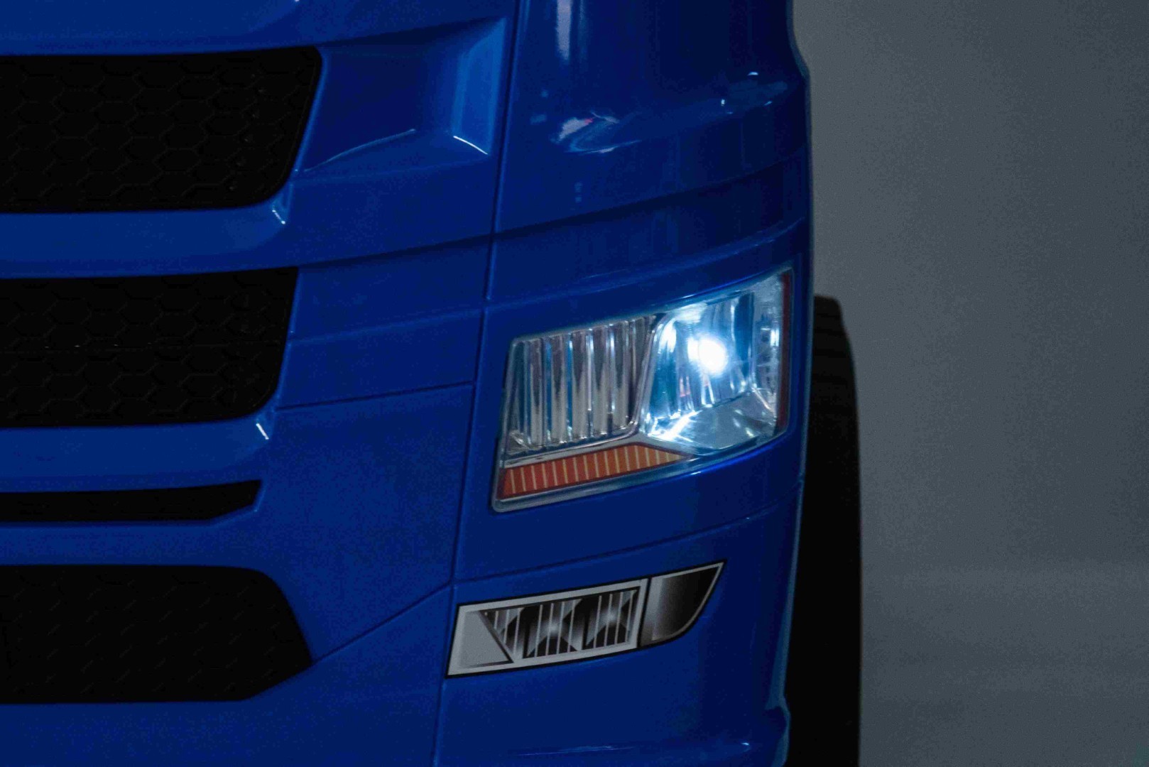 Lastbilen fra Scania har indbygget LED Lys. Desuden er der indbygget batteri indikator.