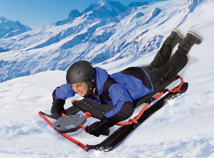 Få mest ud af sneen med en af disse slanke, moderne kælke fra Wham-O! Denne utrolig hurtige kælk har 2 svingende ski knyttet til håndtag til komfort og styring, så brugeren kan styre og manøvrere deres vej rundt om forhindringer og ned af bakken.