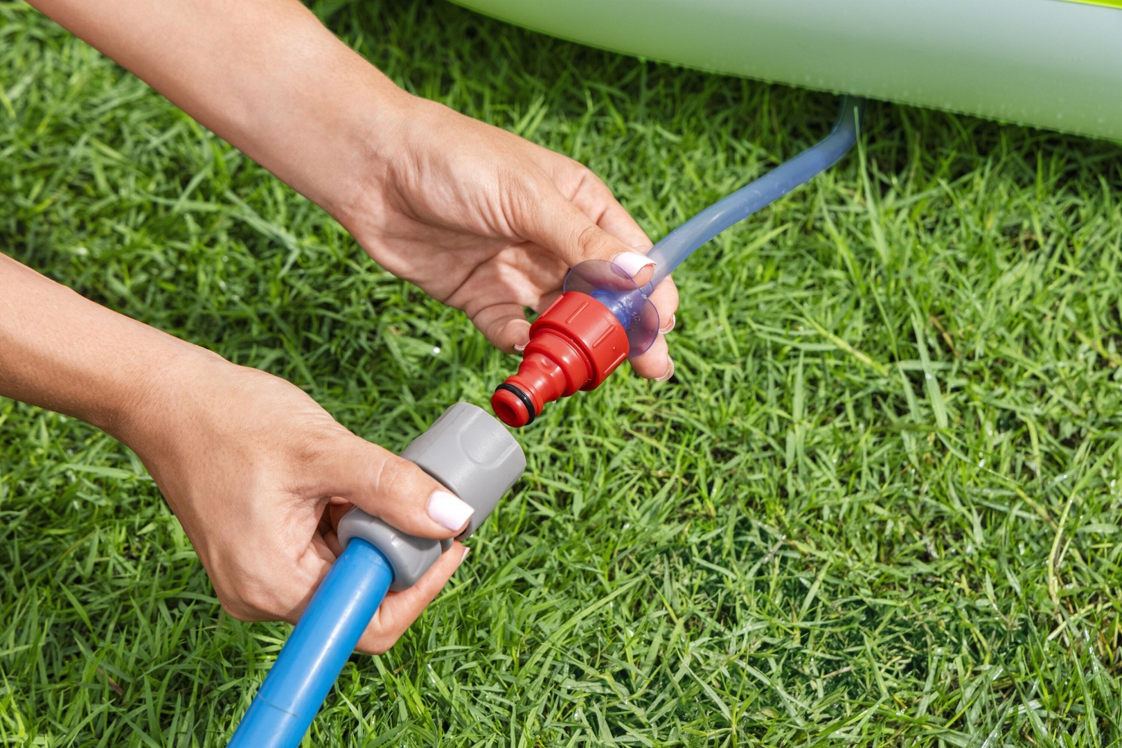 - Vandsprøjten kan forbindes med en haveslange