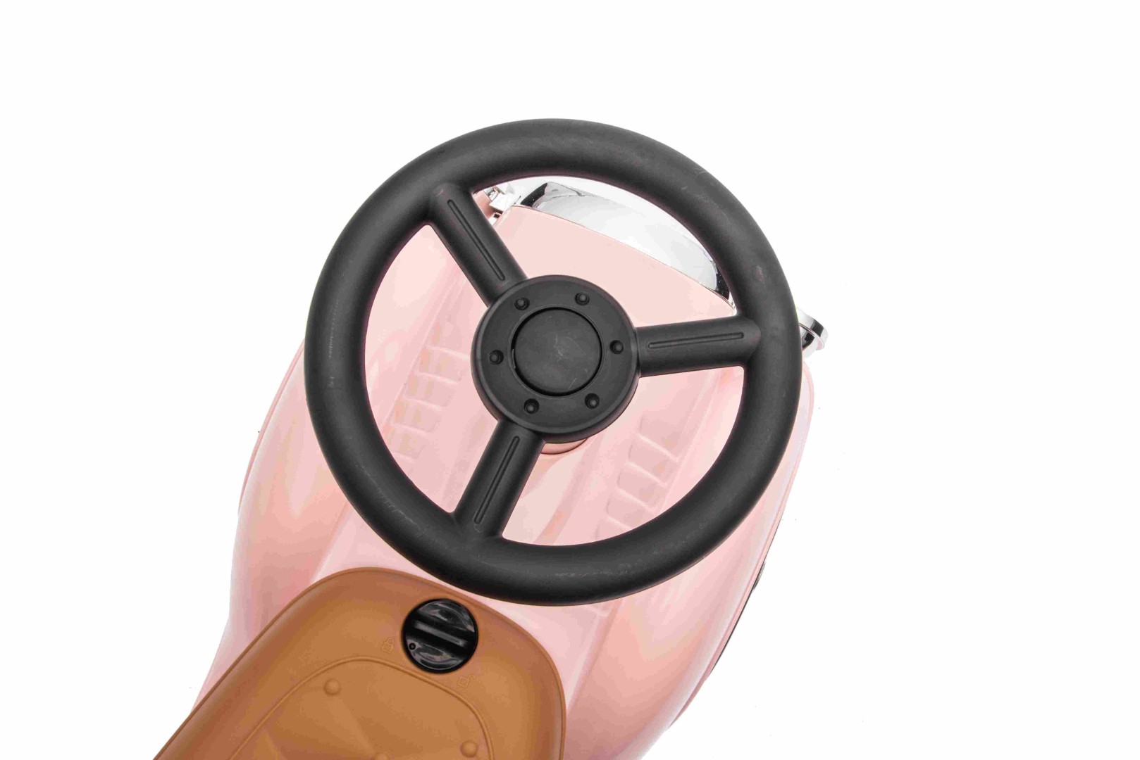 Sikker kørsel: Denne retro gåbil har et realistisk rat med lyd, der gør det nemt for børn at dreje til venstre eller højre. Desuden kan rattat max dreje 40 grader, for at forhindrer at bilen kan vælte.