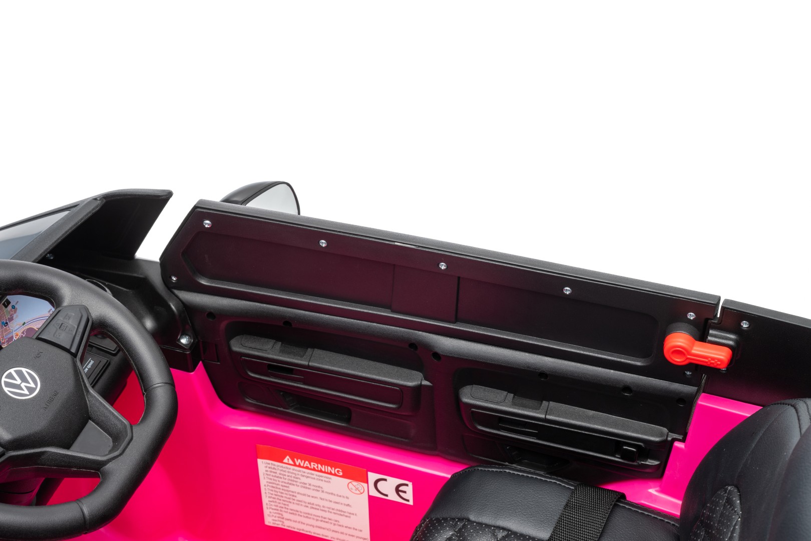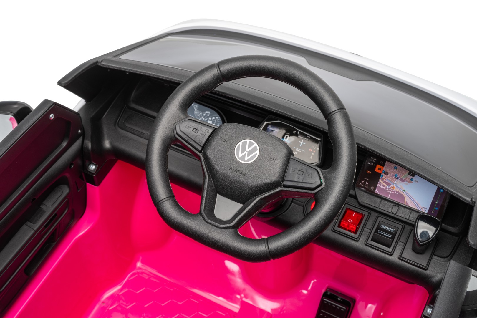 For at gøre oplevelsen endnu mere autentisk er elbilen udstyret med LED lygter, så den ligner en ægte VW Buzz ID – selv når mørket falder på. Detaljerne i instrumentbrættet og rattet med VW-logo fuldender det eksklusive look.