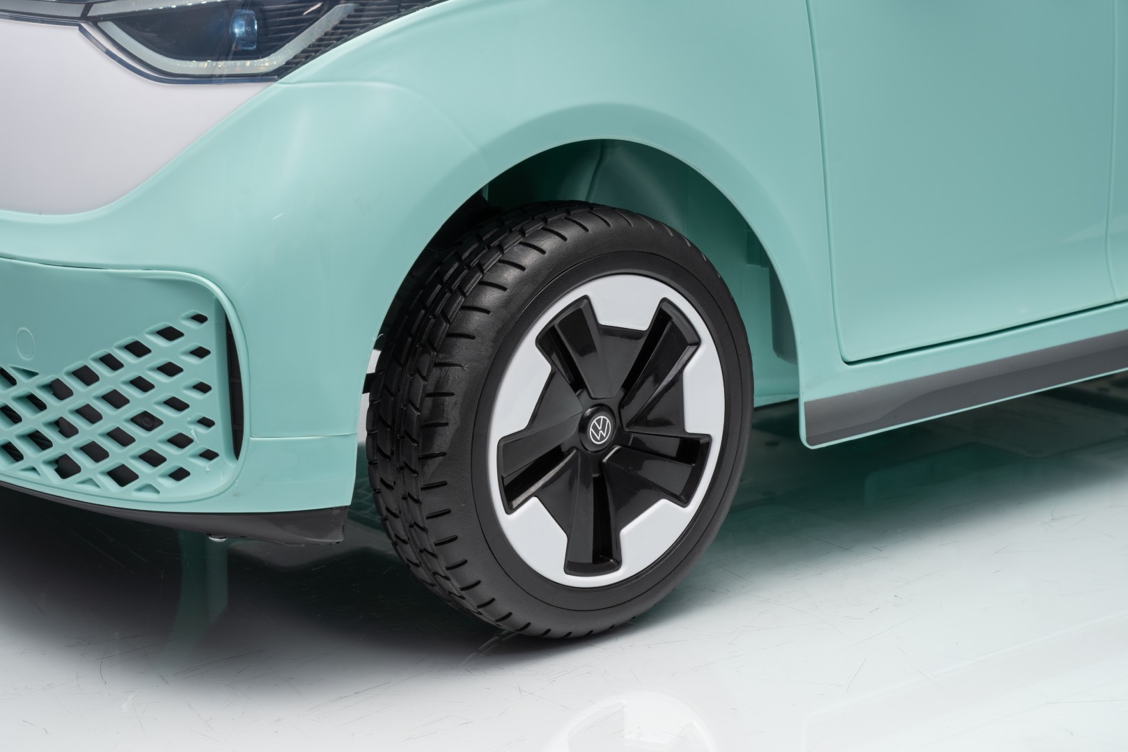 Denne børne-elbil er ikke blot en legetøjsbil, men en mini-udgave af den populære VW ID Buzz, hvor detaljerne er gennemført.